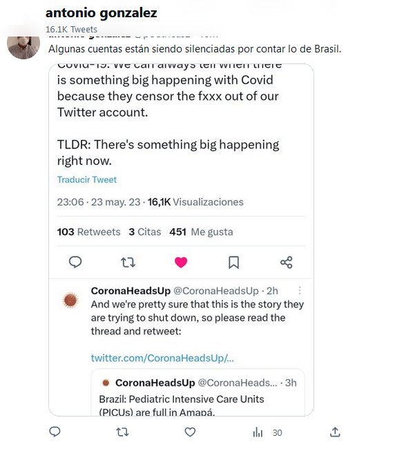 LA MAFIA CEOTUITERA MASKTRAMP CENSURA LA REPANDEMIA EN BRASIL? Algunas cuentas están siendo silenciadas por contar lo de Brasil. Posted on mayo 24, 2023 por coronado