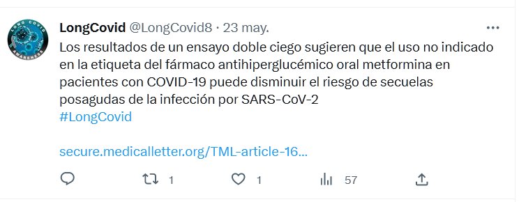 Los resultados de un ensayo doble ciego sugieren que el uso … del fármaco antihiperglucémico oral metformina en pacientes con COVID-19 puede disminuir el riesgo de secuelas posagudas de la infección por SARS-CoV-2