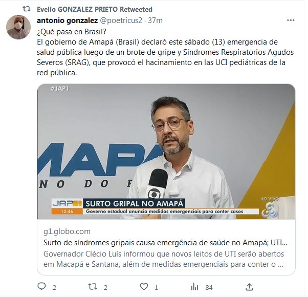 ¿Qué pasa en Brasil? El gobierno de Amapá (Brasil) declaró este sábado (13) emergencia de salud pública luego de un brote de gripe y Síndromes Respiratorios Agudos Severos (SRAG), que provocó el hacinamiento en las UCI pediátricas de la red pública.