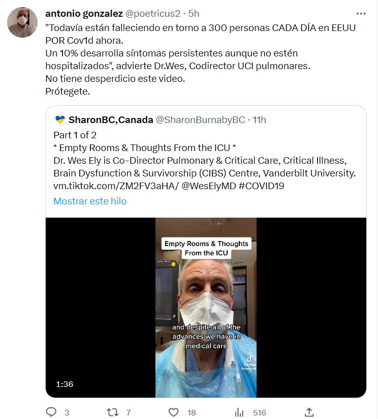 BIDEN=OMS=CDC=MENTIROSOS «Todavía están falleciendo en torno a 300 personas CADA DÍA en EEUU POR Covid ahora. Un 10% desarrolla síntomas persistentes aunque no estén hospitalizados», advierte Dr.Wes, Codirector UCI pulmonares. No tiene desperdicio este video. Prótegete.