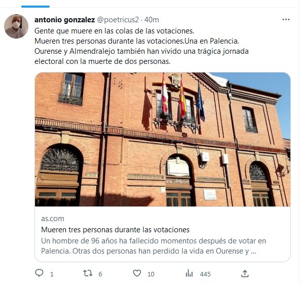 «NOCOVID» HACE ESTRAGOS Gente que muere en las colas de las votaciones. Mueren tres personas durante las votaciones.Una en Palencia. Ourense y Almendralejo también han vivido una trágica jornada electoral con la muerte de dos personas.