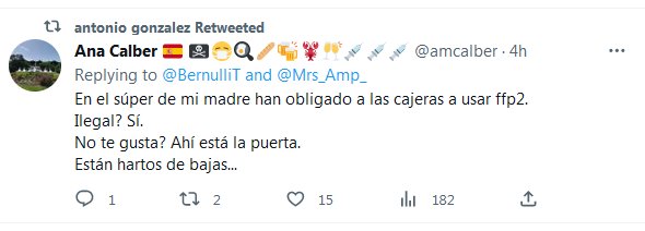 TESTIMONIOS En el súper de mi madre han obligado a las cajeras a usar ffp2. No te gusta? Ahí está la puerta. Están hartos de bajas… Posted on mayo 28, 2023 por coronado
