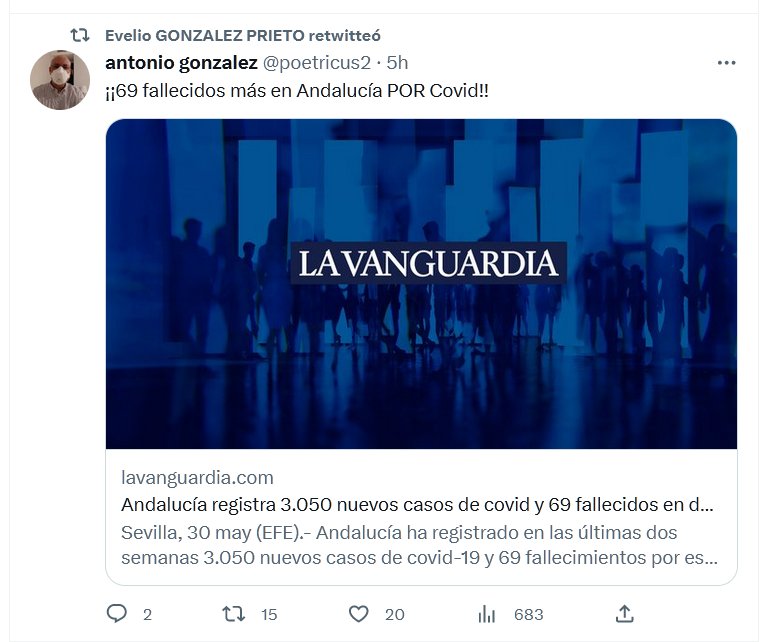 LA PANDEMIA NO TERMINÓ ¡¡69 fallecidos más en Andalucía POR Covid!! Posted on mayo 30, 2023 por coronado https://www.lavanguardia.com/vida/20230530/9006512/andalucia-registra-3-050-nuevos-casos-covid-69-fallecidos-dos-semanas.html