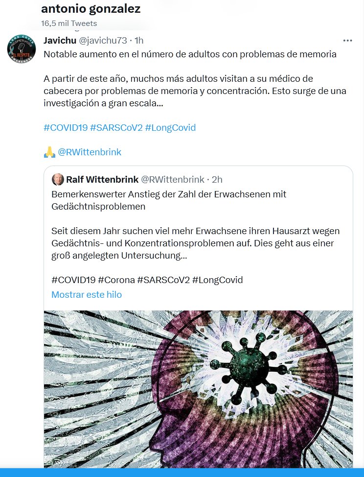 Notable aumento en el número de adultos con problemas de memoria A partir de este año, muchos más adultos visitan a su médico de cabecera por problemas de memoria y concentración. Esto surge de una investigación a gran escala… #COVID19 #SARSCoV2 #LongCovid