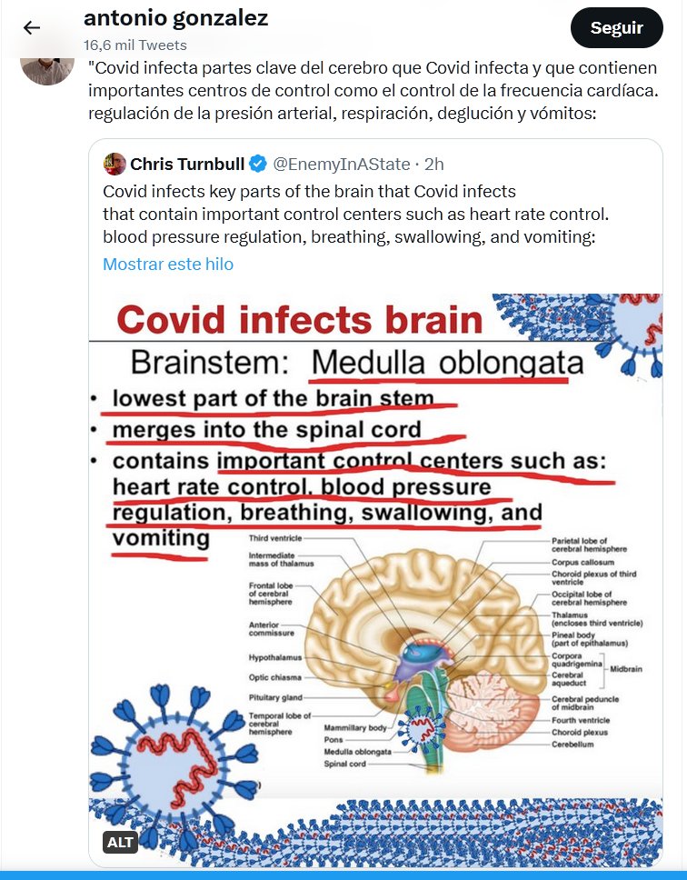 «Covid infecta partes clave del cerebro … que contienen importantes centros de control como el control de la frecuencia cardíaca. regulación de la presión arterial, respiración, deglución y vómitos»