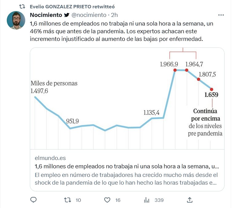 QUÉ ENFERMEDAD HABRÁ PRODUCIDO ESTO? 1,6 millones de empleados no trabaja ni una sola hora a la semana, un 46% más que antes de la pandemia. Los expertos achacan este incremento injustificado al aumento de las bajas por enfermedad.