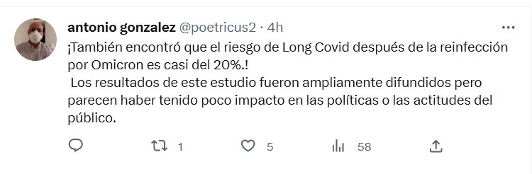 1 DE CADA 5 TERMINA CON LONGCOVID!!! USEN MASCARILLA! ¡También encontró que el riesgo de Long Covid después de la reinfección por Omicron es casi del 20%.! Los resultados de este estudio fueron ampliamente difundidos pero parecen haber tenido poco impacto en las políticas o las actitudes del público.
