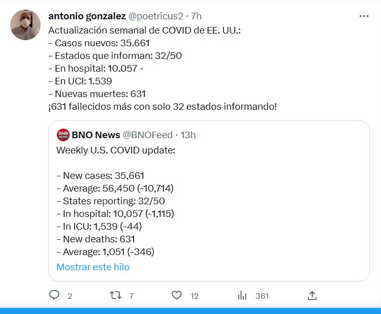 BIDEN, OMS, CDC, MAFIA MEDIÁTICA MUNDIAL, MIENTEN! Actualización semanal de COVID de EE. UU.: – Casos nuevos: 35.661 – Estados que informan: 32/50 – En hospital: 10.057 – – En UCI: 1.539 – Nuevas muertes: 631 ¡631 fallecidos más con solo 32 estados informando!