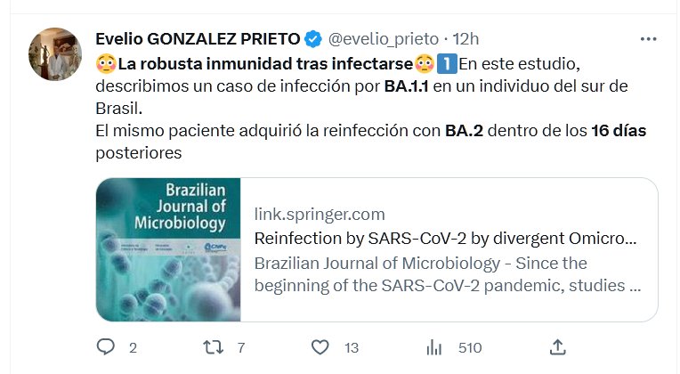 SARCASMO, SORNA, IRONÍA, BURLA, SOCARRONERÍA 😳La robusta inmunidad tras infectarse😳1⃣En este estudio, describimos un caso de infección por BA.1.1 en un individuo del sur de Brasil. El mismo paciente adquirió la reinfección con BA.2 dentro de los 16 días posteriores