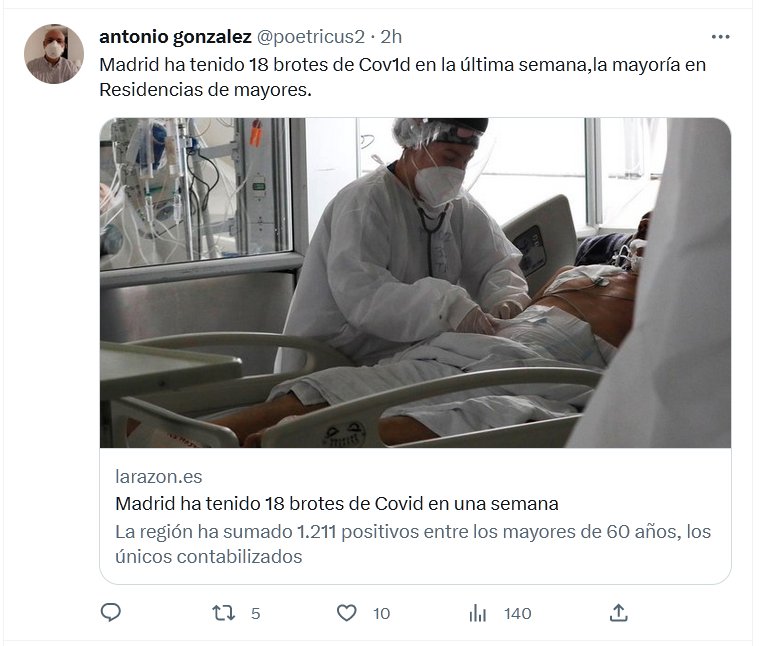 Madrid ha tenido 18 brotes de Cov1d en la última semana,la mayoría en Residencias de mayores. Posted on junio 7, 2023 por coronado