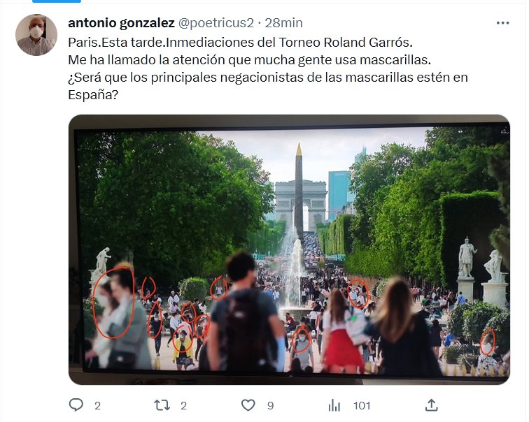 PERO, SEGURO, SEGURO, SEGURO QUE LA PANDEMIA TERMINÓ? Paris.Esta tarde.Inmediaciones del Torneo Roland Garrós. Me ha llamado la atención que mucha gente usa mascarillas. ¿Será que los principales negacionistas de las mascarillas estén en España?