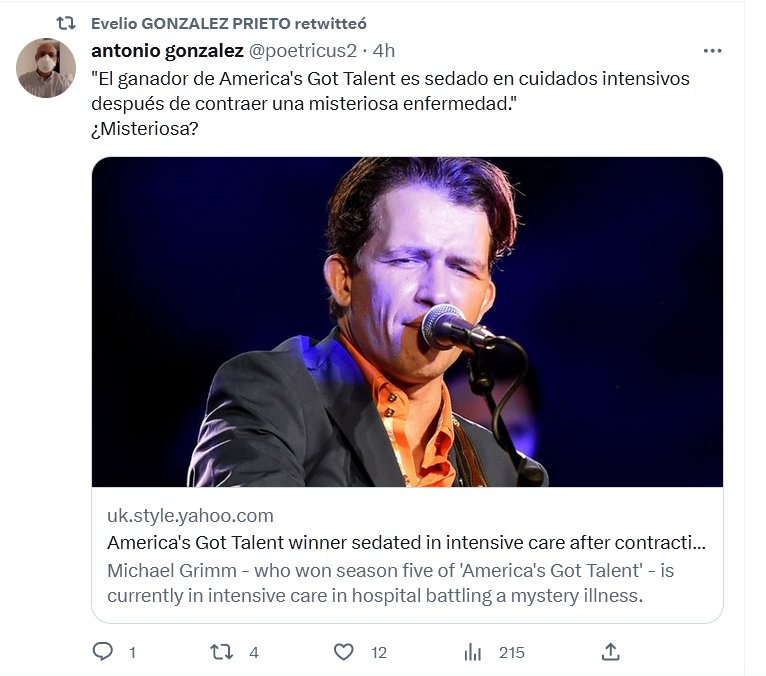 UNA DE MISTERIO «El ganador de America’s Got Talent es sedado en cuidados intensivos después de contraer una misteriosa enfermedad.» ¿Misteriosa? Posted on junio 7, 2023 por coronado NI AL SIDA LO OCULTARON TANTO ¿POR QUÉ OCULTAN TANTO A .... ? ¡UY, PERDÓN, CASI LO DIGO!