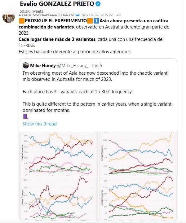 COVID-19 PANDEMIA LIBERADA 🟧PROSIGUE EL EXPERIMENTO🟧1⃣Asia ahora presenta una caótica combinación de variantes, observada en Australia durante gran parte de 2023. Cada lugar tiene más de 3 variantes, cada una con una frecuencia del 15-30%. Esto es bastante diferente al patrón de años anteriores.
