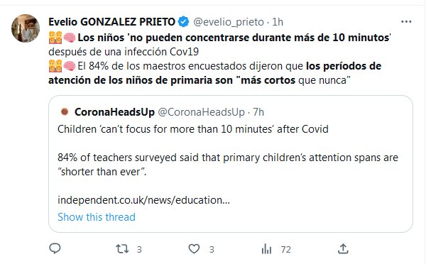 QUERÍAN CLASES PRESENCIALES? 👩👩👧👧🧠Los niños ‘no pueden concentrarse durante más de 10 minutos’ después de una infección Cov19 👩👩👧👧🧠El 84% de los maestros encuestados dijeron que los períodos de atención de los niños de primaria son «más cortos que nunca»