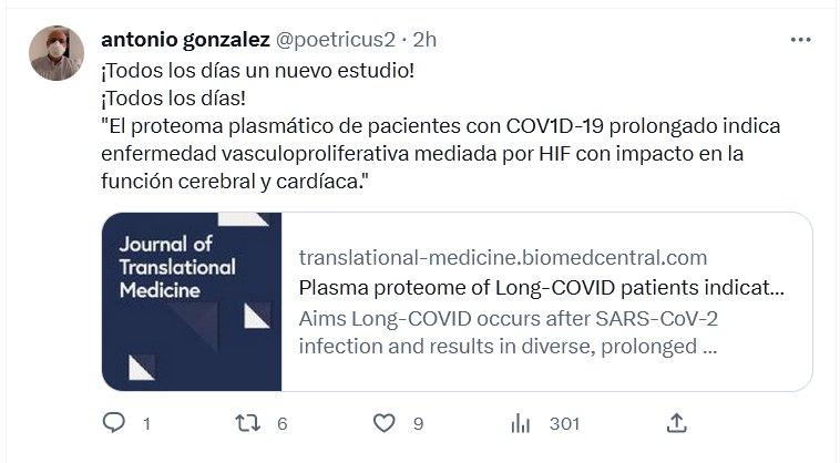 ¡Todos los días un nuevo estudio! ¡Todos los días! «El proteoma plasmático de pacientes con COV1D-19 prolongado indica enfermedad vasculoproliferativa mediada por HIF con impacto en la función cerebral y cardíaca.»