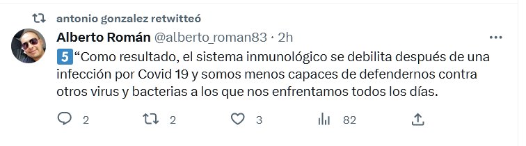 “Como resultado, el sistema inmunológico se debilita después de una infección por Covid 19 y somos menos capaces de defendernos contra otros virus y bacterias a los que nos enfrentamos todos los días.