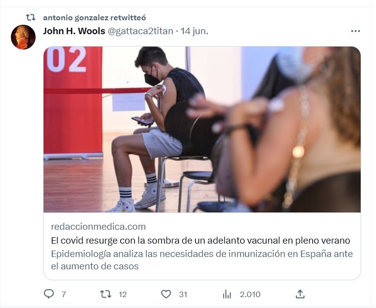 El covid resurge con la sombra de un adelanto vacunal en pleno verano Epidemiología analiza las necesidades de inmunización en España ante el aumento de casos Posted on junio 15, 2023 por coronado https://www.redaccionmedica.com/secciones/sanidad-hoy/el-covid-resurge-con-la-sombra-de-un-adelanto-vacunal-en-pleno-verano-8296