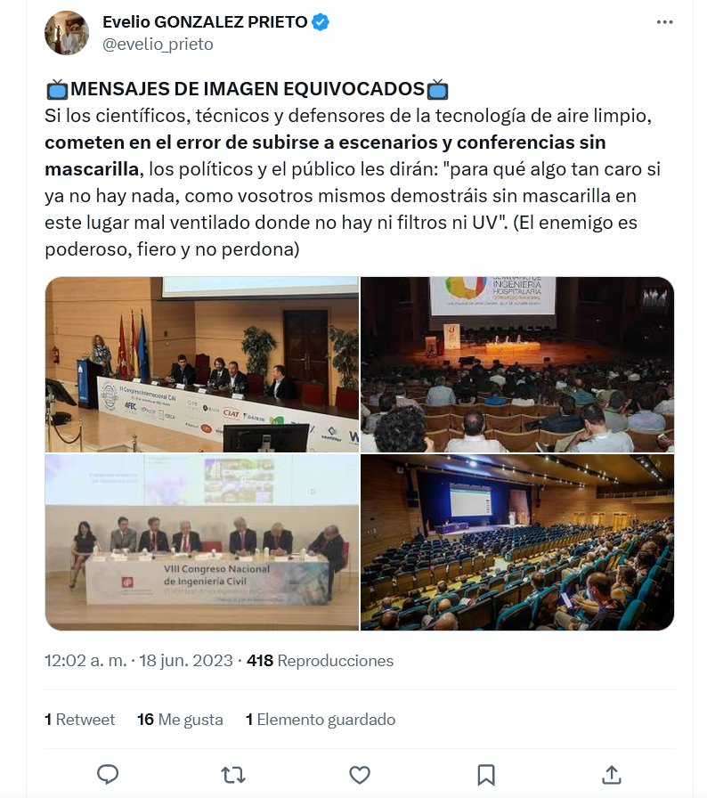 📺MENSAJES DE IMAGEN EQUIVOCADOS📺 Si los científicos, técnicos y defensores de la tecnología de aire limpio, cometen en el error de subirse a escenarios y conferencias sin mascarilla, los políticos y el público les dirán: «para qué algo tan caro si ya no hay nada, como vosotros mismos demostráis sin mascarilla»