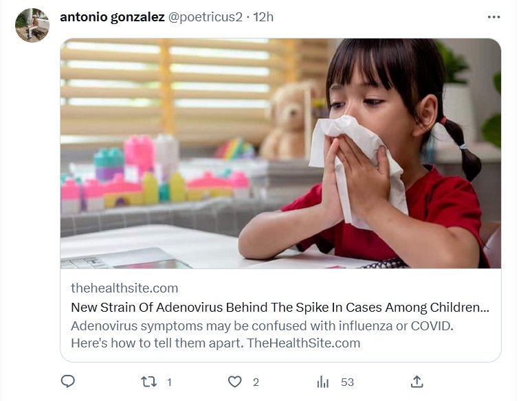 PARAPANDEMIA-SS (EN INGLÉS) Aumento en el número de casos de adenovirus entre los niños: A menudo, el adenovirus afecta el tracto respiratorio (nariz, garganta, tráquea y pulmones) causando síntomas como fiebre, tos y resfriado. Estos síntomas pueden confundirse con influenza o COVID