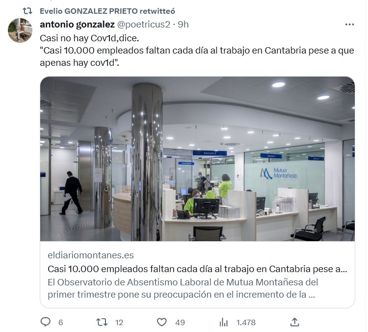 DIFÍCIL DE TAPAR! Casi no hay Covid, dice. «Casi 10.000 empleados faltan cada día al trabajo en Cantabria pese a que apenas hay covid». Posted on junio 21, 2023 por coronado