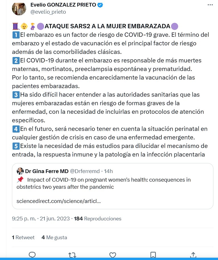 👶🤰🟣ATAQUE SARS2 A LA MUJER EMBARAZADA🟣 1⃣El embarazo es un factor de riesgo de COVID-19 grave. El término del embarazo y el estado de vacunación es el principal factor de riesgo además de las comorbilidades clásicas. 2⃣El COVID-19 durante el embarazo es responsable de más muertes maternas, mortinatos, preeclampsia espontánea y prematuridad. Por lo tanto, se recomienda encarecidamente la vacunación de las pacientes embarazadas.