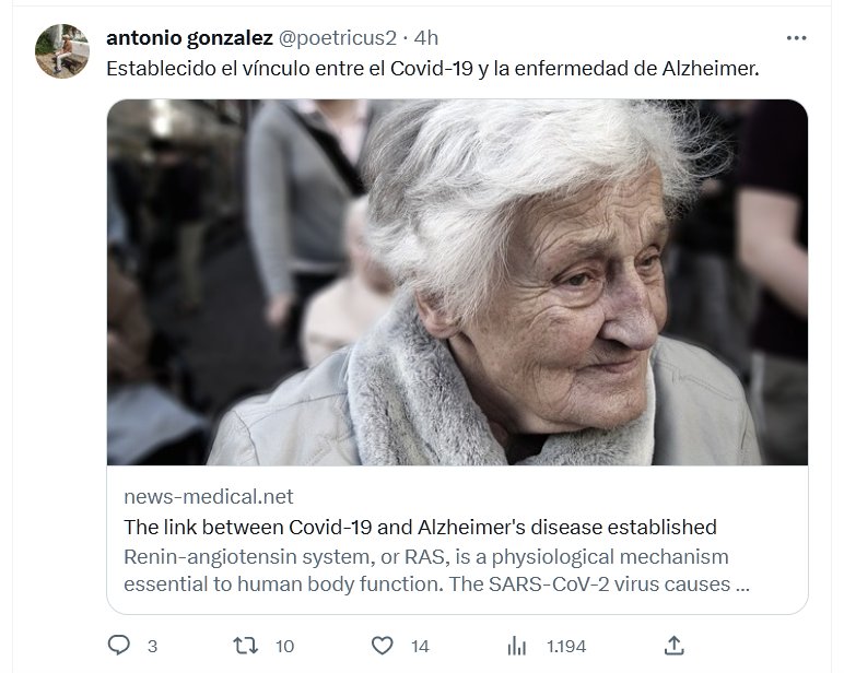 Establecido el vínculo entre el Covid-19 y la enfermedad de Alzheimer Posted on junio 22, 2023 por coronado
