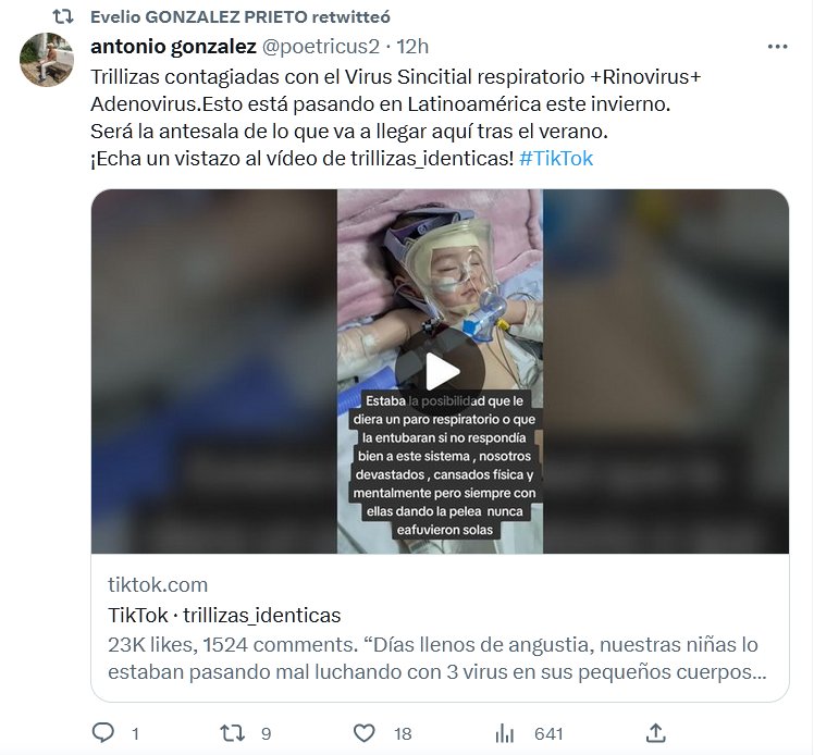 PARAPANDEMIA-SS ¿SIN RELACIÓN? ¿EN SERIO? Trillizas contagiadas con el Virus Sincitial respiratorio +Rinovirus+ Adenovirus.Esto está pasando en Latinoamérica este invierno. Será la antesala de lo que va a llegar aquí tras el verano.