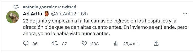 TESTIMONIOS 23 de junio y empiezan a faltar camas de ingreso en los hospitales y la dirección pide que se den altas cuanto antes. En invierno se entiende, pero ahora, yo no lo había visto nunca antes.