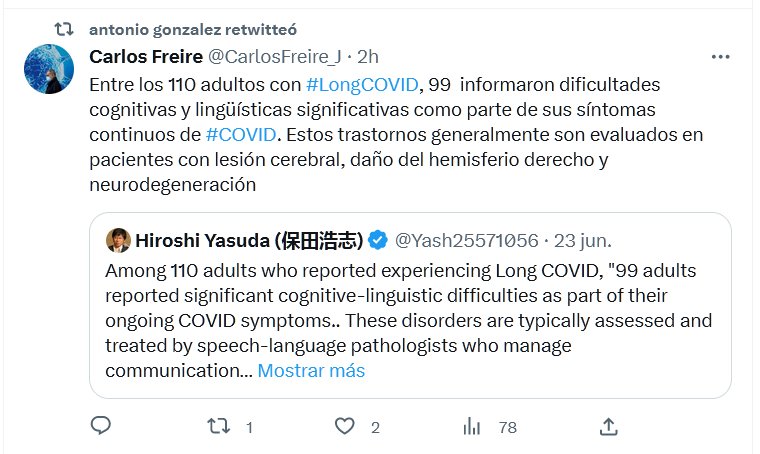 90% !!! Entre los 110 adultos con #LongCOVID, 99 informaron dificultades cognitivas y lingüísticas significativas como parte de sus síntomas continuos de #COVID. Estos trastornos generalmente son evaluados en pacientes con lesión cerebral, daño del hemisferio derecho y neurodegeneración