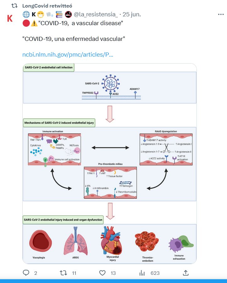 • Vipin M. Vashishtha @vipintukur · Un equipo de investigadores sugiere que la #COVIDPersistente podría ser, en parte, una enfermedad de los vasos sanguíneos más pequeños del cuerpo (microcirculación). ➡️ El daño a estos diminutos vasos podría reducir el flujo sanguíneo y el suministro de oxígeno a órganos como el cerebro, los pulmones y los músculos.