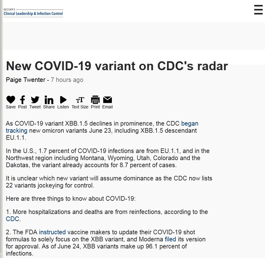 EN INGLÉS Nueva variante de COVID-19 en el radar de los CDC A medida que la variante XBB.1.5 de COVID-19 disminuye, los CDC comenzaron a rastrear nuevas variantes de omicron, incluido el descendiente de XBB.1.5 EU.1.1