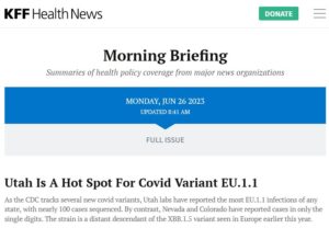 EN INGLÉS Utah es un punto caliente para la variante de Covid EU.1.1 Posted on junio 26, 2023 por coronado https://kffhealthnews.org/morning-breakout/utah-is-a-hot-spot-for-covid-variant-eu-1-1/