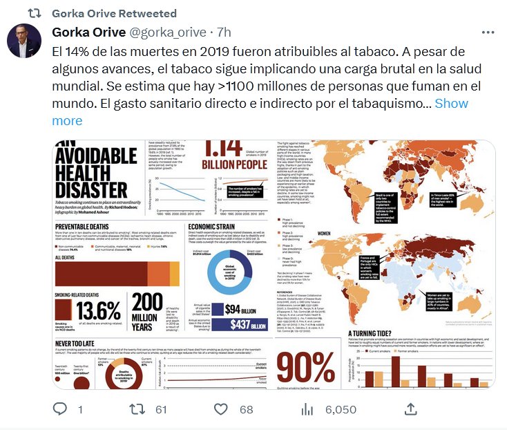 COVID NO ES LA ÚNICA ARMA MORTAL El 14% de las muertes en 2019 fueron atribuibles al tabaco. A pesar de algunos avances, el tabaco sigue implicando una carga brutal en la salud mundial. Se estima que hay >1100 millones de personas que fuman en el mundo. El gasto sanitario directo e indirecto por el tabaquismo…