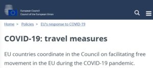 EN INGLÉS: COVID-19: medidas de viaje Los países de la UE se coordinan en el Consejo para facilitar la libre circulación en la UE durante la pandemia de COVID-19. Posted on julio 4, 2023 por coronado https://www.consilium.europa.eu/en/policies/coronavirus/covid-19-travel-measures/