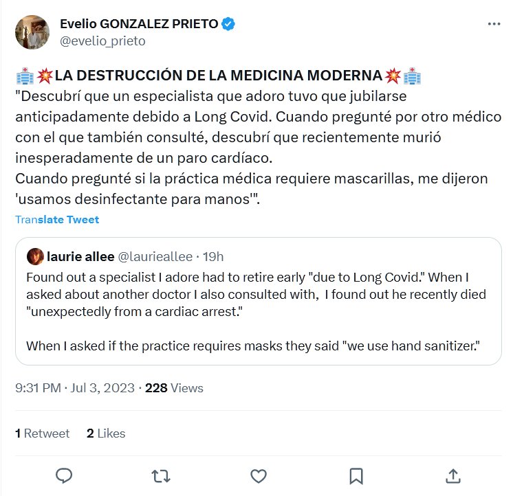 TESTIMONIOS 🏥💥LA DESTRUCCIÓN DE LA MEDICINA MODERNA💥🏥 «Descubrí que un especialista que adoro tuvo que jubilarse anticipadamente debido a Long Covid. Cuando pregunté por otro médico con el que también consulté, descubrí que recientemente murió inesperadamente de un paro cardíaco.»
