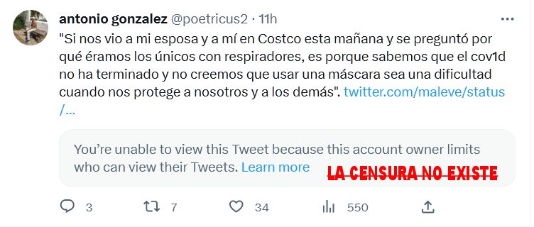 TESTIMONIOS «Si nos vio a mi esposa y a mí en Costco esta mañana y se preguntó por qué éramos los únicos con respiradores, es porque sabemos que el cov1d no ha terminado y no creemos que usar una máscara sea una dificultad cuando nos protege a nosotros y a los demás».