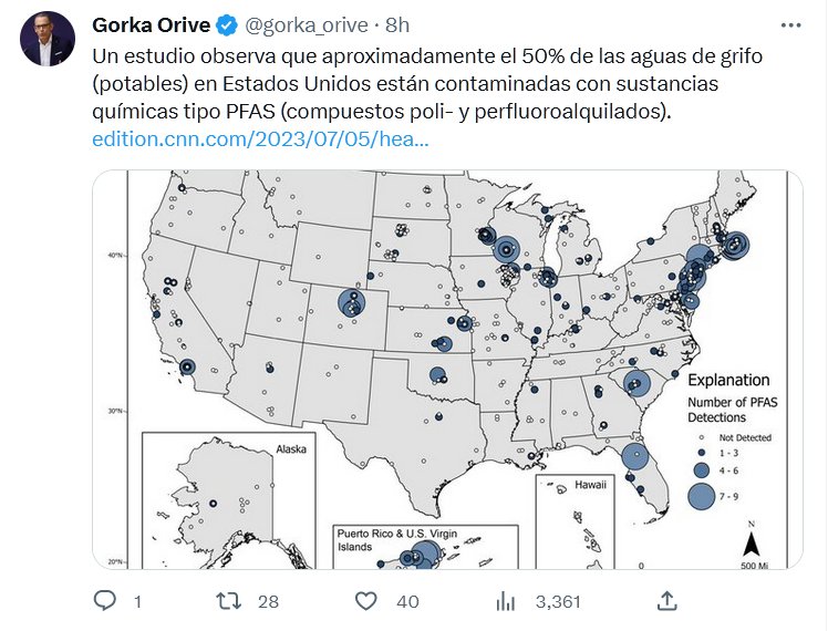 PESTE «1º MUNDO» CANCERÍGENO Un estudio observa que aproximadamente el 50% de las aguas de grifo (potables) en Estados Unidos están contaminadas con sustancias químicas tipo PFAS (compuestos poli- y perfluoroalquilados).