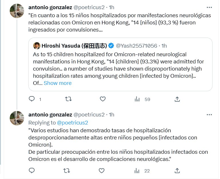 «En cuanto a los 15 niños hospitalizados por manifestaciones neurológicas relacionadas con Omicron en Hong Kong, «14 [niños] (93,3 %) fueron ingresados por convulsiones… Posted on julio 8, 2023 por coronado