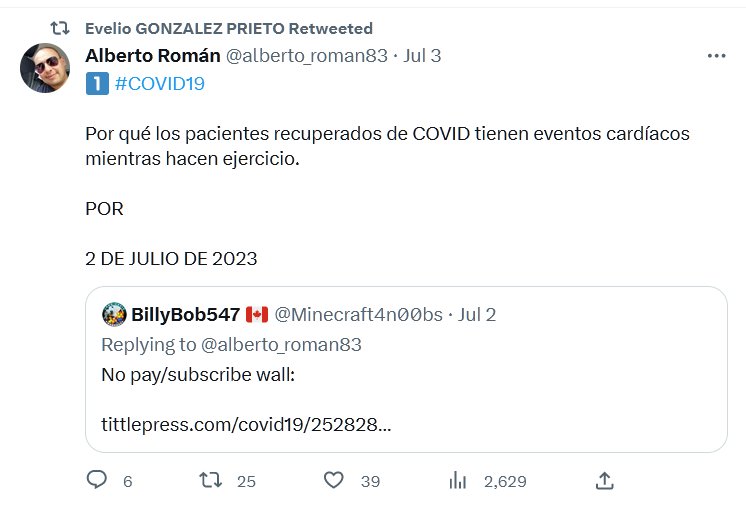 EN INGLÉS: Por qué los pacientes recuperados de COVID tienen eventos cardíacos mientras hacen ejercicio? Posted on julio 8, 2023 por coronado https://tittlepress.com/covid19/2528284/