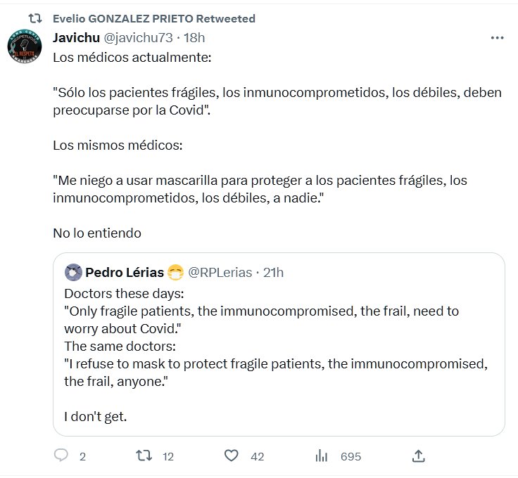 YO SÍ LO ENTIENDO: LOS PERROS DE PAVLOV.ICH Los médicos actualmente: «Sólo los pacientes frágiles, los inmunocomprometidos, los débiles, deben preocuparse por la Covid». Los mismos médicos: «Me niego a usar mascarilla para proteger a los pacientes frágiles, los inmunocomprometidos, los débiles, a nadie.» No lo entiendo