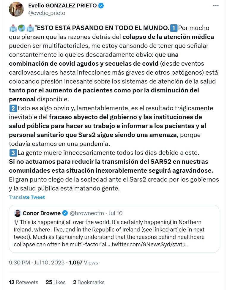 🏥🌏🏥»ESTO ESTÁ PASANDO EN TODO EL MUNDO. Por mucho que piensen que las razones detrás del colapso de la atención médica pueden ser multifactoriales, me estoy cansando de tener que señalar constantemente lo que es descaradamente obvio: que una combinación de covid agudos y secuelas de covid
