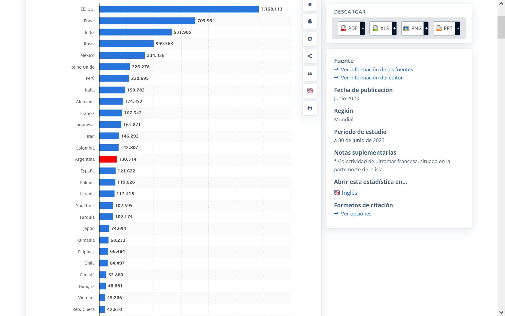 Número de personas fallecidas a causa del coronavirus en el mundo a fecha de 30 de junio de 2023, por país Posted on julio 11, 2023 por coronado