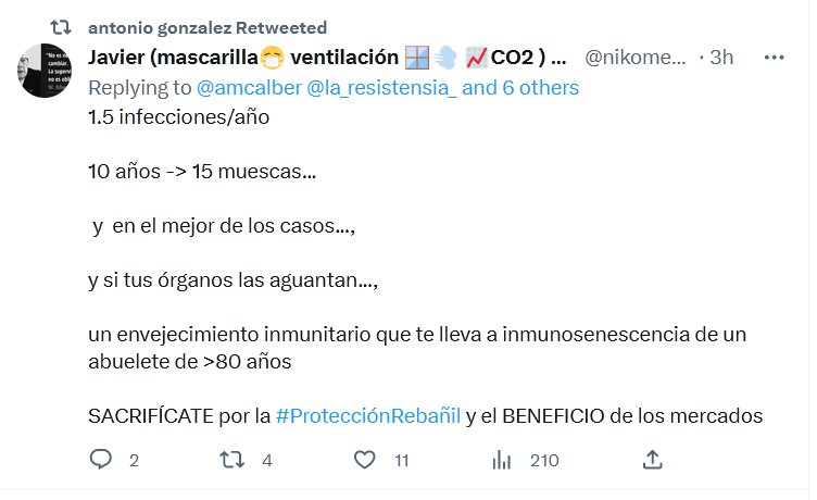 SARCASMO, IRONÍA, SOCARRONERÍA, BURLA 1.5 infecciones/año 10 años -> 15 muescas… y en el mejor de los casos…, y si tus órganos las aguantan…, un envejecimiento inmunitario que te lleva a inmunosenescencia de un abuelete de >80 años SACRIFÍCATE por la #ProtecciónRebañil y el BENEFICIO de los mercados