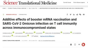 EN INGLÉS Efectos aditivos de la vacunación de refuerzo con ARNm y la infección por SARS-CoV-2 Omicron en la inmunidad de las células T en estados inmunocomprometidos Posted on julio 13, 2023 por coronado https://www.science.org/doi/10.1126/scitranslmed.adg9452