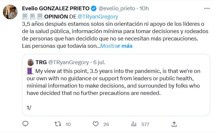 📃📃📃OPINIÓN DE @TRyanGregory 3,5 años después estamos solos sin orientación ni apoyo de los líderes o de la salud pública, información mínima para tomar decisiones y rodeados de personas que han decidido que no se necesitan más precauciones.