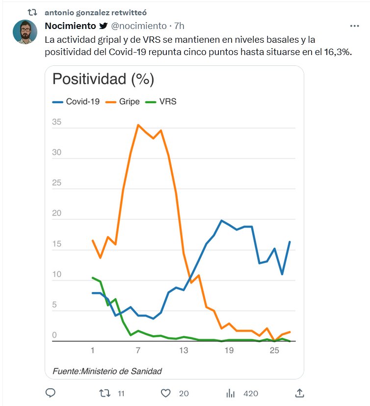 La actividad gripal y de VRS se mantienen en niveles basales y la positividad del Covid-19 repunta cinco puntos hasta situarse en el 16,3%. Posted on julio 14, 2023 por coronado
