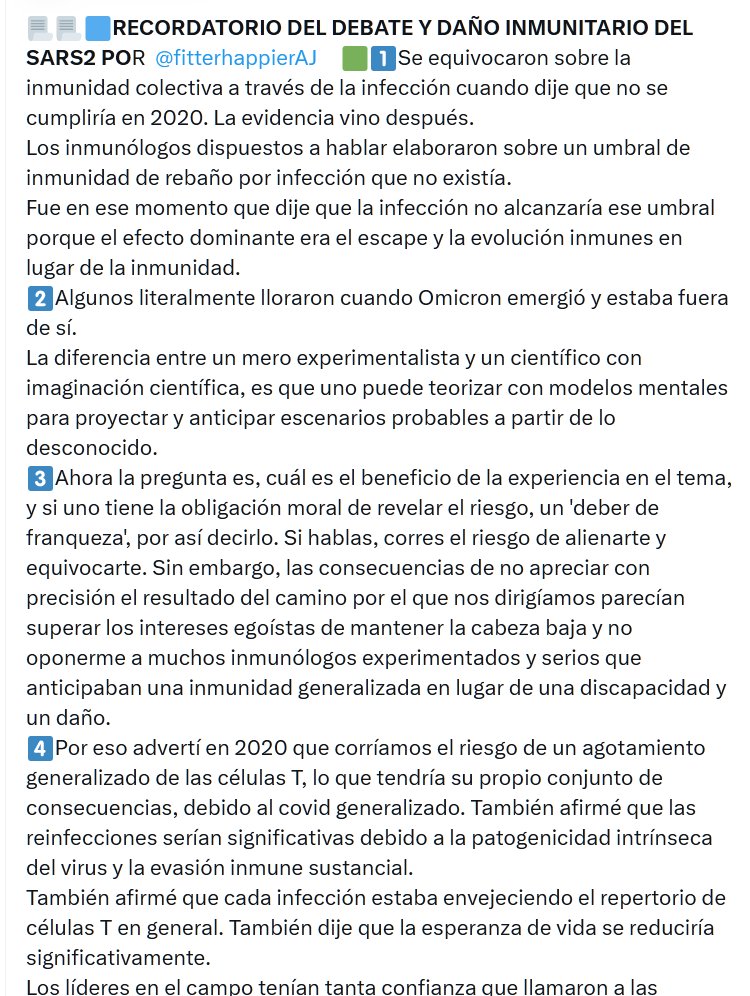 📃📃🟦RECORDATORIO DEL DEBATE Y DAÑO INMUNITARIO DEL SARS2 POR @fitterhappierAJ 🟩1⃣Se equivocaron sobre la inmunidad colectiva a través de la infección cuando dije que no se cumpliría en 2020. La evidencia vino después.
