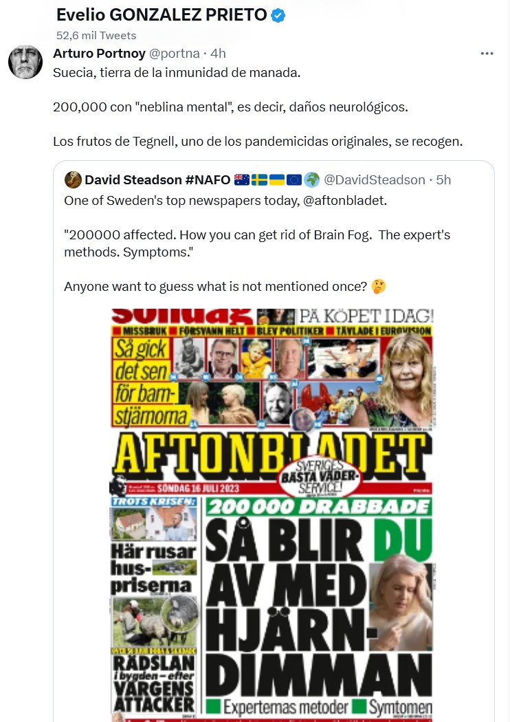 Suecia, tierra de la inmunidad de manada. 200,000 con «neblina mental», es decir, daños neurológicos. Los frutos de Tegnell, uno de los pandemicidas originales, se recogen. Posted on julio 16, 2023 por coronado