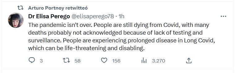 EN INGLÉS La pandemia no ha terminado. La gente sigue muriendo de covid, y muchas muertes probablemente no se reconozcan debido a la falta de pruebas y vigilancia. Las personas experimentan una enfermedad prolongada en Long Covid, que puede ser potencialmente mortal e incapacitante.