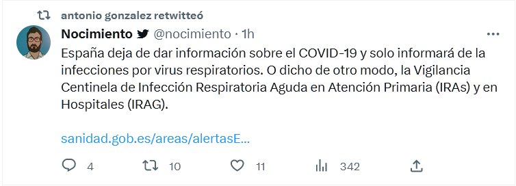 NOTINFORMO España deja de dar información sobre el COVID-19 y solo informará de la infecciones por virus respiratorios. O dicho de otro modo, la Vigilancia Centinela de Infección Respiratoria Aguda en Atención Primaria (IRAs) y en Hospitales (IRAG).